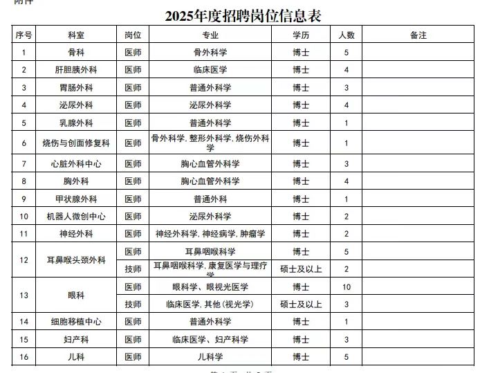 根据医院发展规划,结合学科建设需要,现将2025年度招聘公告如下: