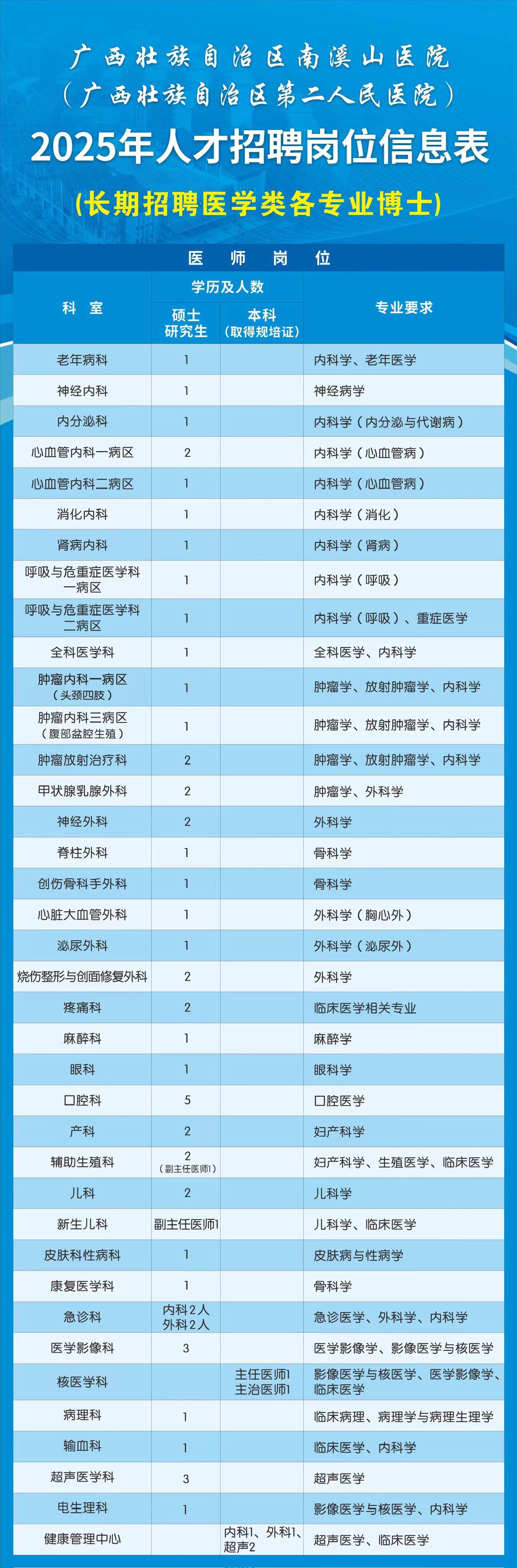 招聘影像岗位14人广西壮族自治区南溪山医院2025年度招聘