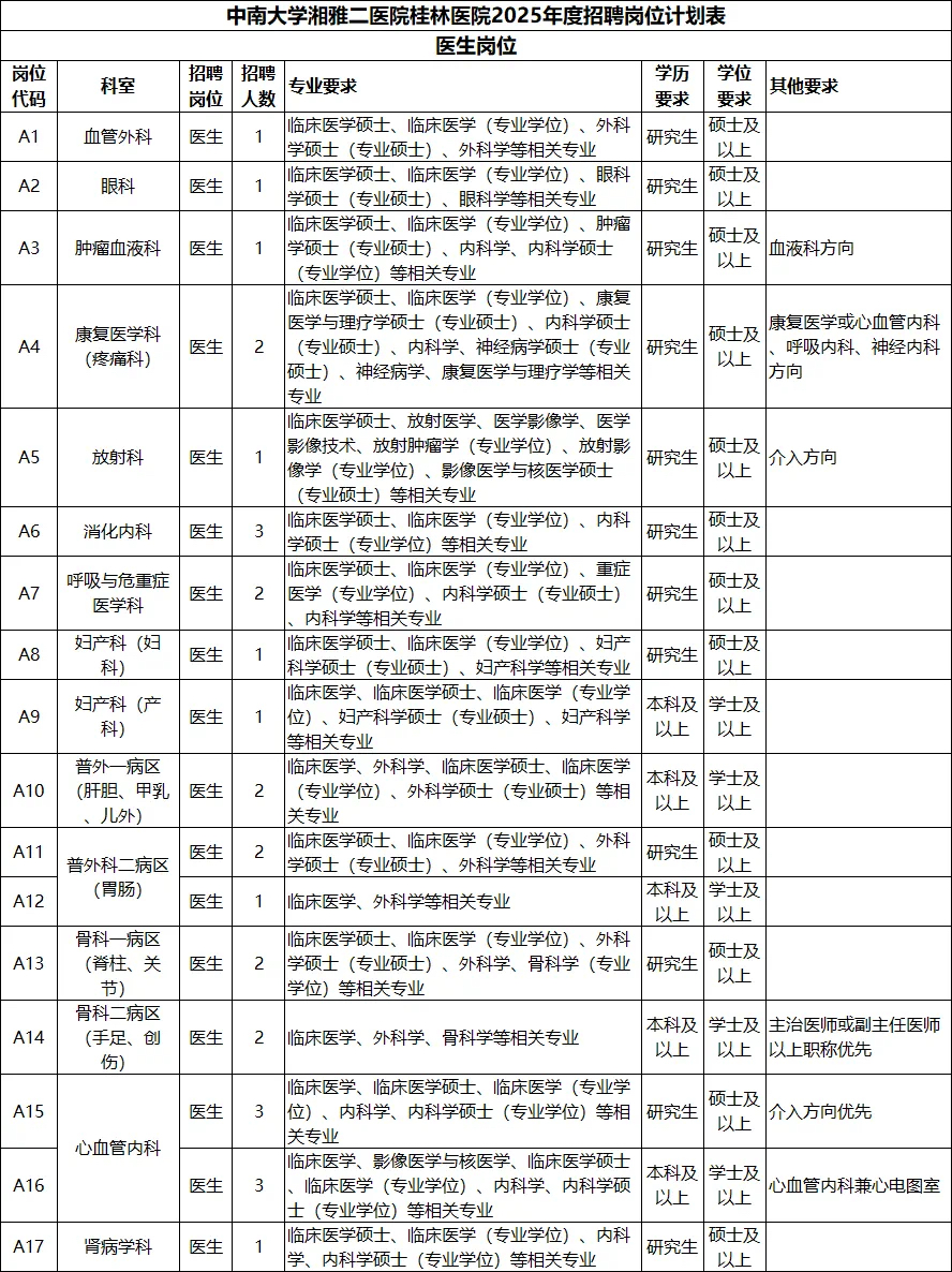 2.本公告发布之日起,原2024年05月11日发布的《中南大学湘雅二医院桂林医院2024年度第二批招聘公告》失效,以此公告为准。