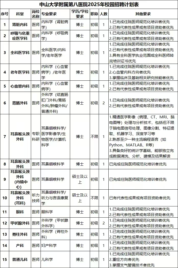 中山大学附属第八医院2025届校园招聘计划(见附件)