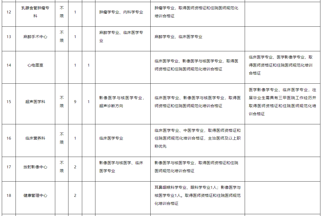 (七)工作经验:医师、医技、护理岗位往届毕业生要求有三级医院的工作经验。